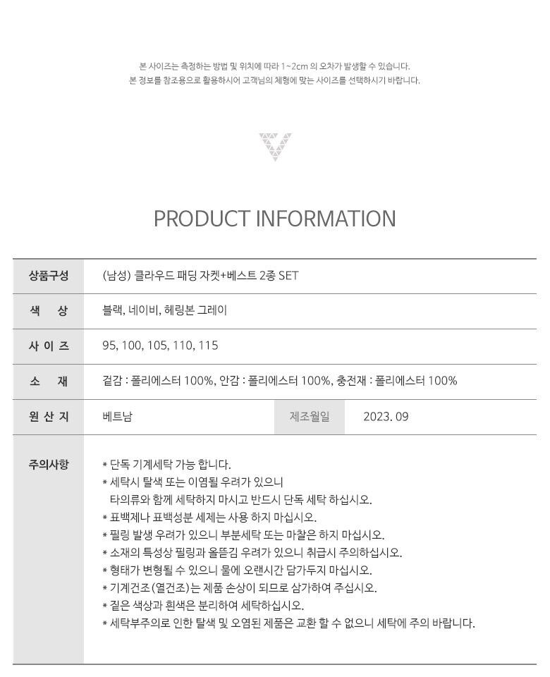 2SET [아리스토우] 남성 클라우드 경량패딩점퍼+베스트 2종세트
