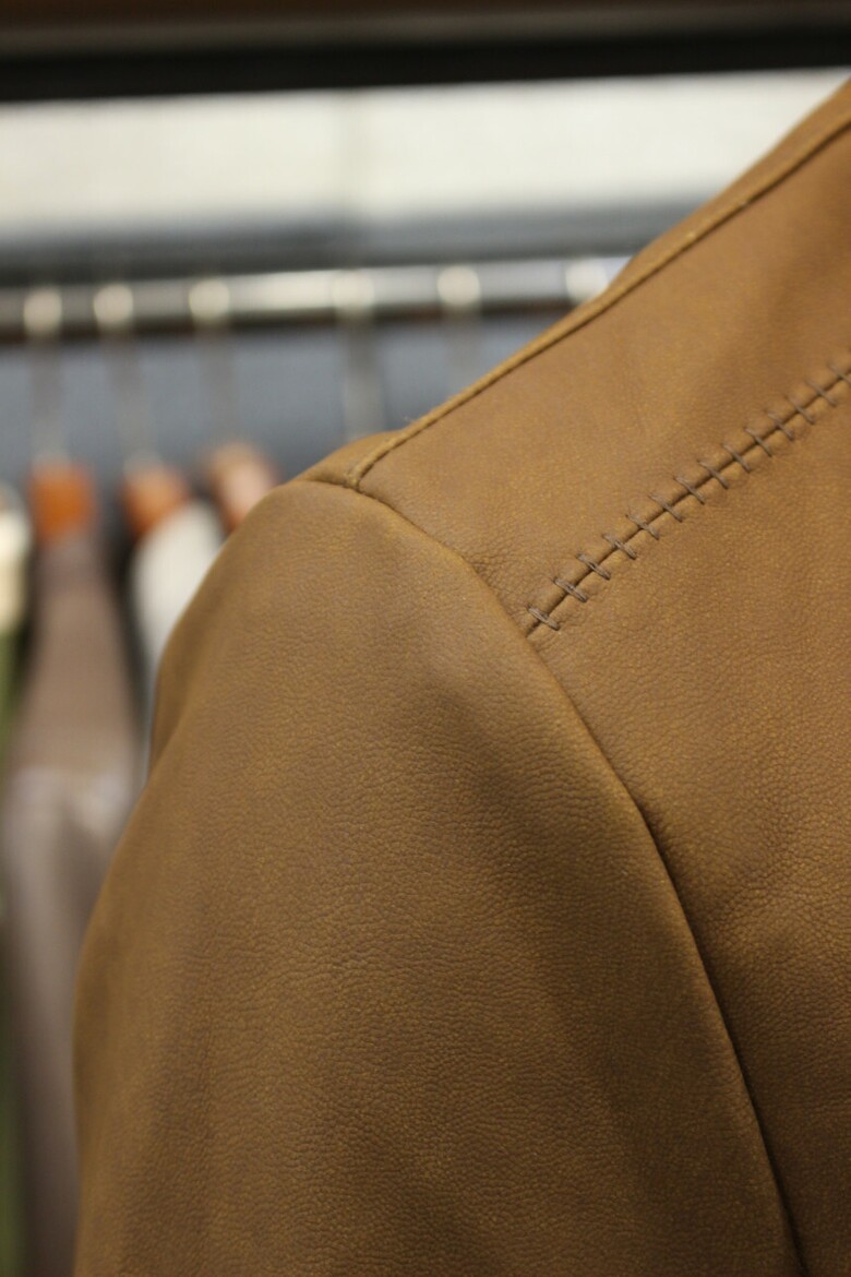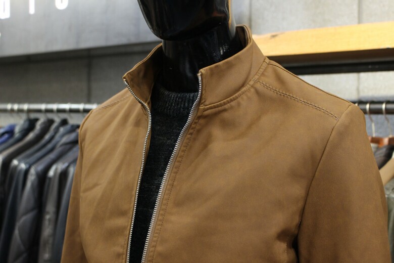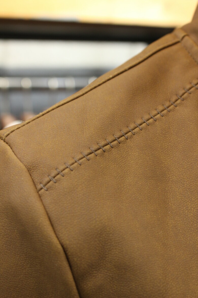 에코레더 카멜브라운 하이넥스티치인조가죽점퍼 m-ipjp59br