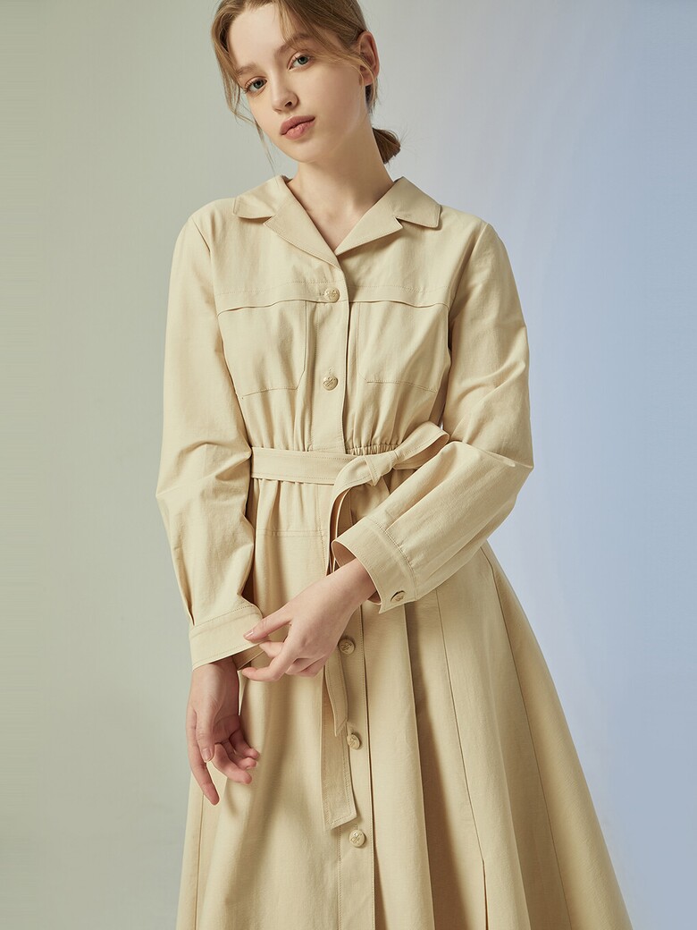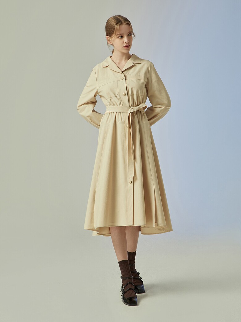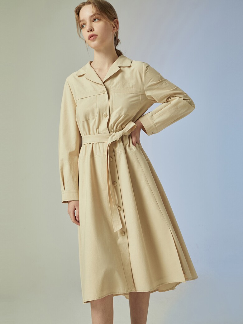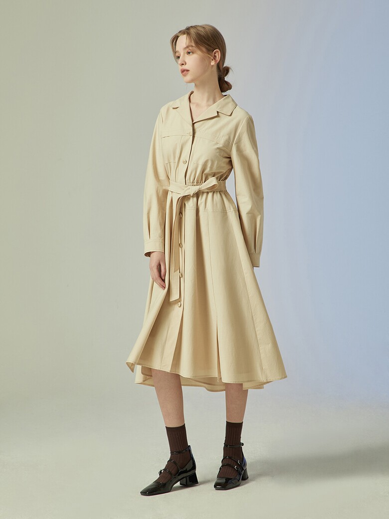 - 단정한 느낌의 셔츠형 원피스입니다.