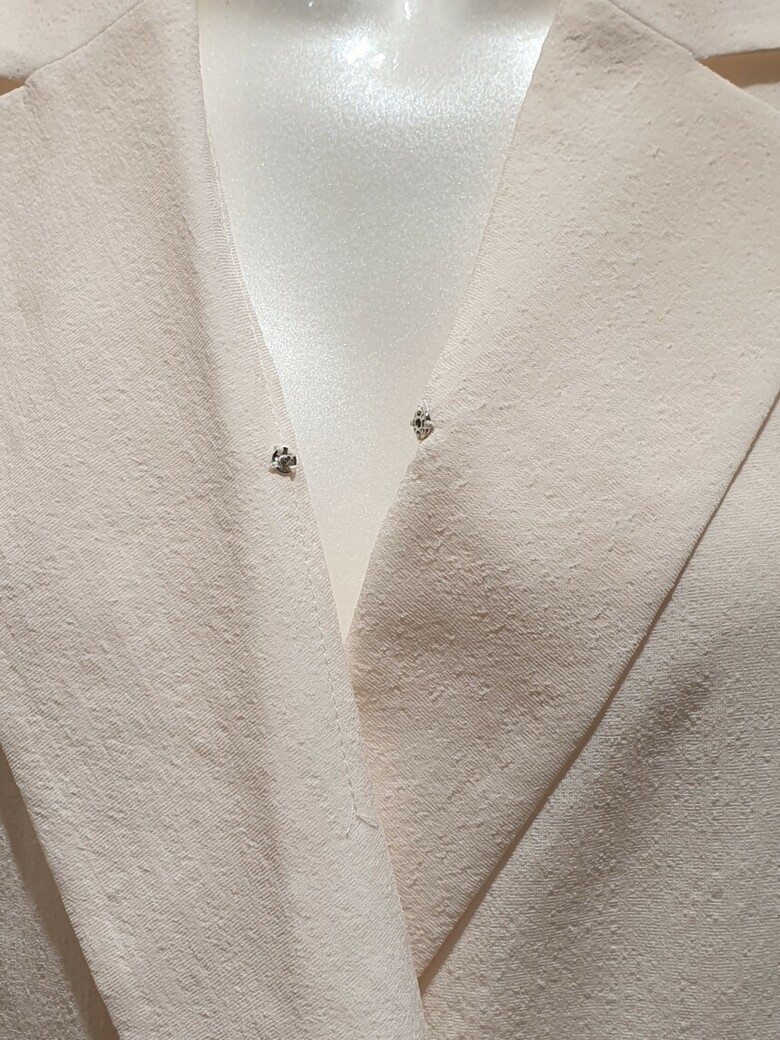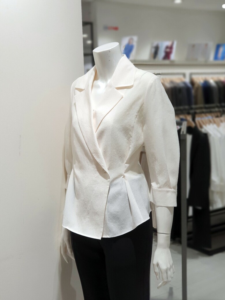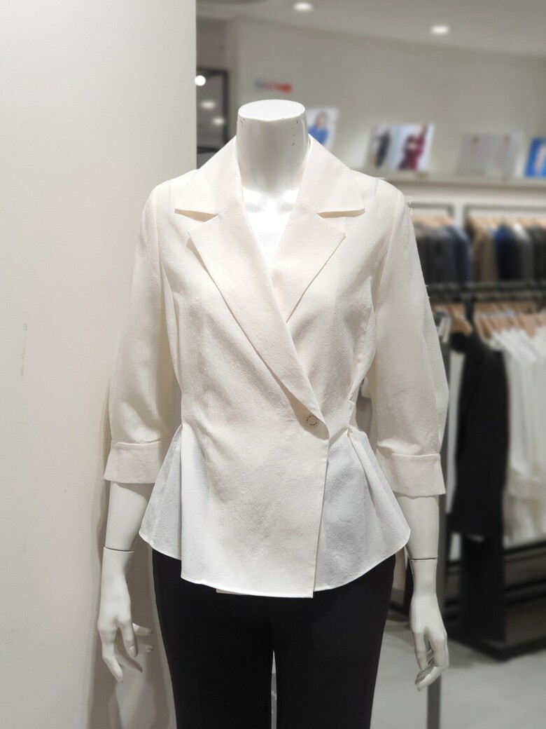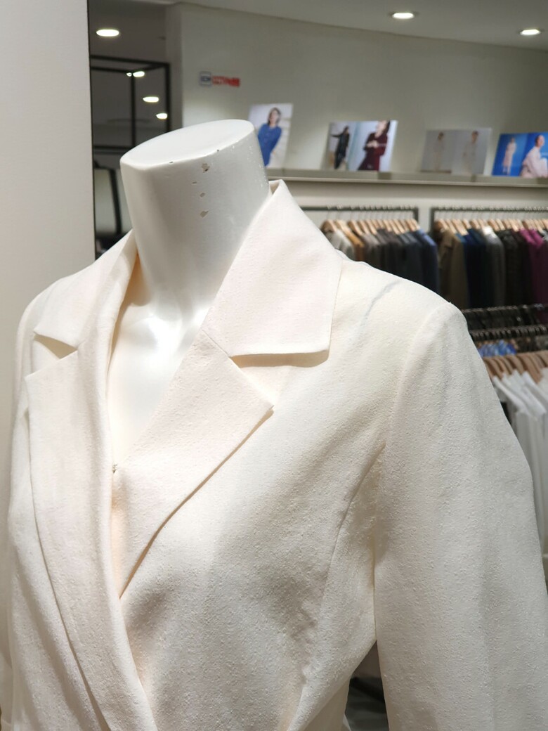 브이넥 라인의 테일러드 칼라가 스타일리시하며