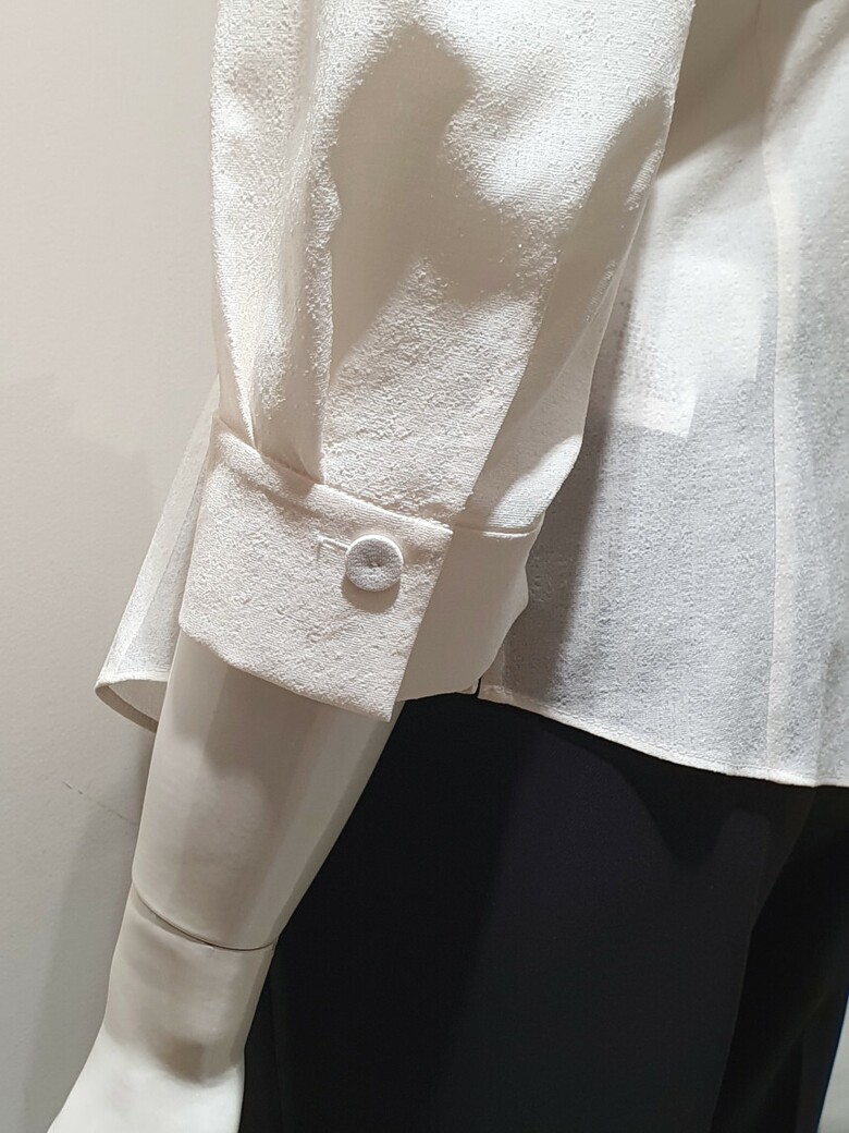 턱 디테일의 볼륨감 있는 슬리브 실루엣이 맵시를 더해줍니다.