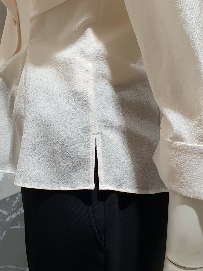 페플럼 디자인이 페미닌한 블라우스입니다.