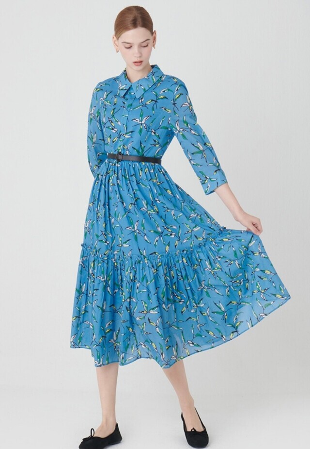 샤틴 플라워프린트 칠부소매원피스S233m670