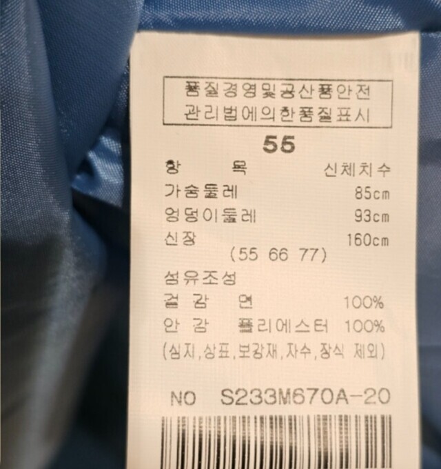 | 1. 제품 소재 (섬유의 조성 또는 혼용률을 백분율로 표시, 기능성인 경우 성적서 또는 허가서) | 상품상세참조 |