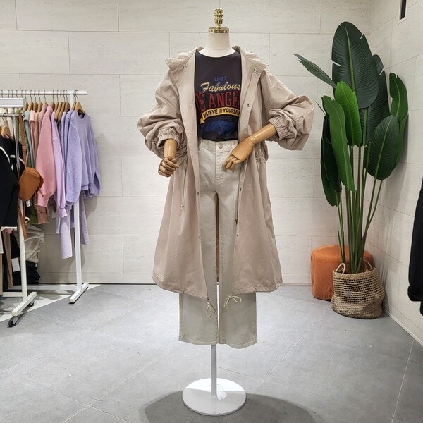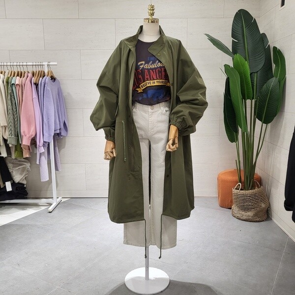 C23C7FJP016_허리 스트링 롱 야상점퍼