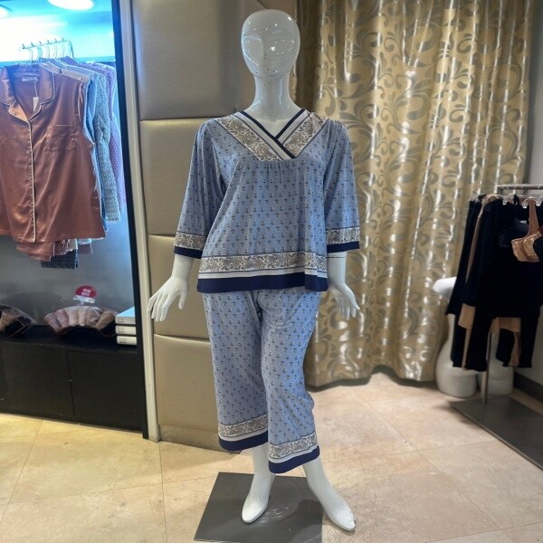 VEV3824 VEP3824-MT_폴리스판 7부 여성 플라워 실내복세트