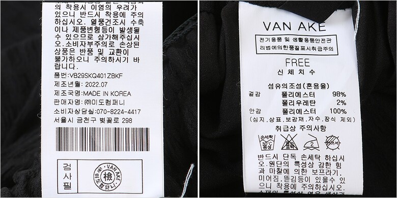 • 처음 배송된 상품상태와 다를 경우(세탁/착용 후 외출하신 경우) 반품이 불가합니다.
