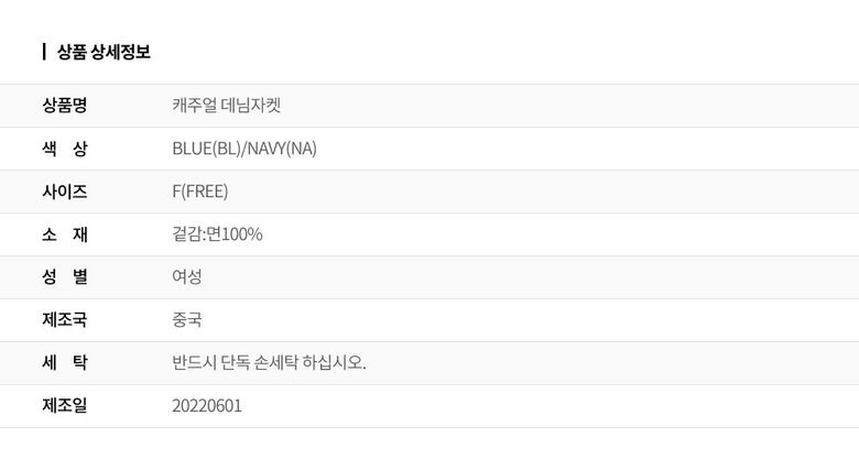 | 6. 세탁방법 및 취급시 주의사항 | 상세페이지 참조 |