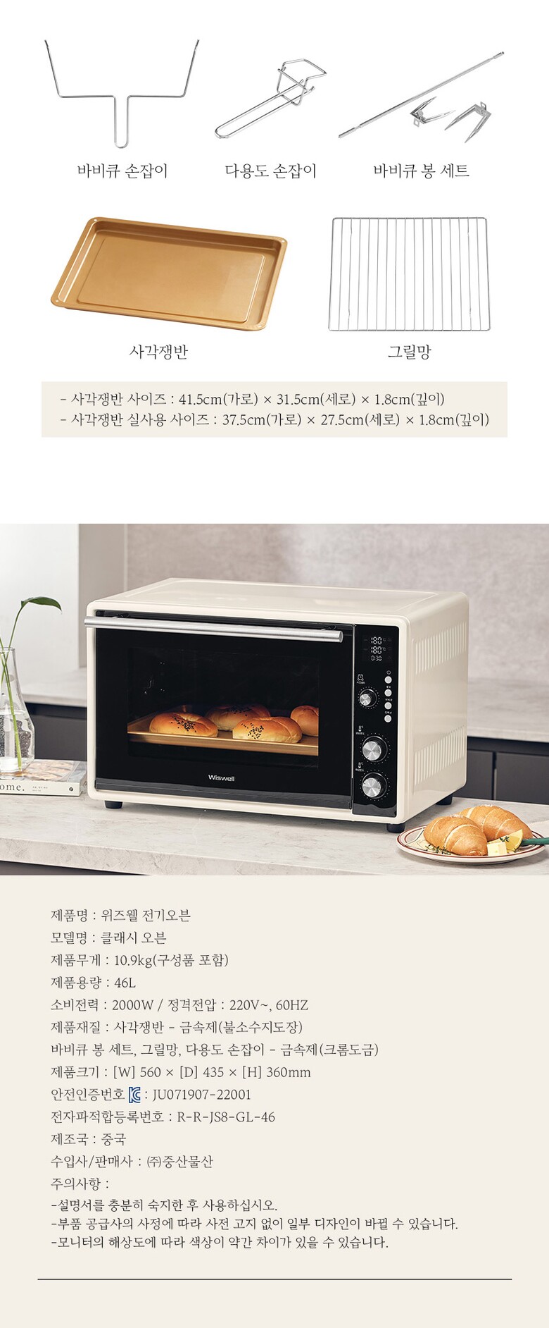 클래시 오븐 46L 디지털 컨벡션 베이킹 전기 가정용