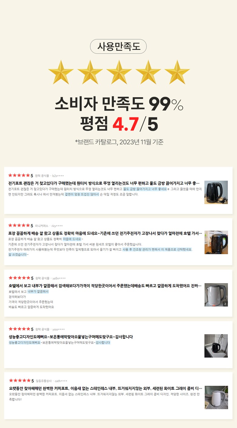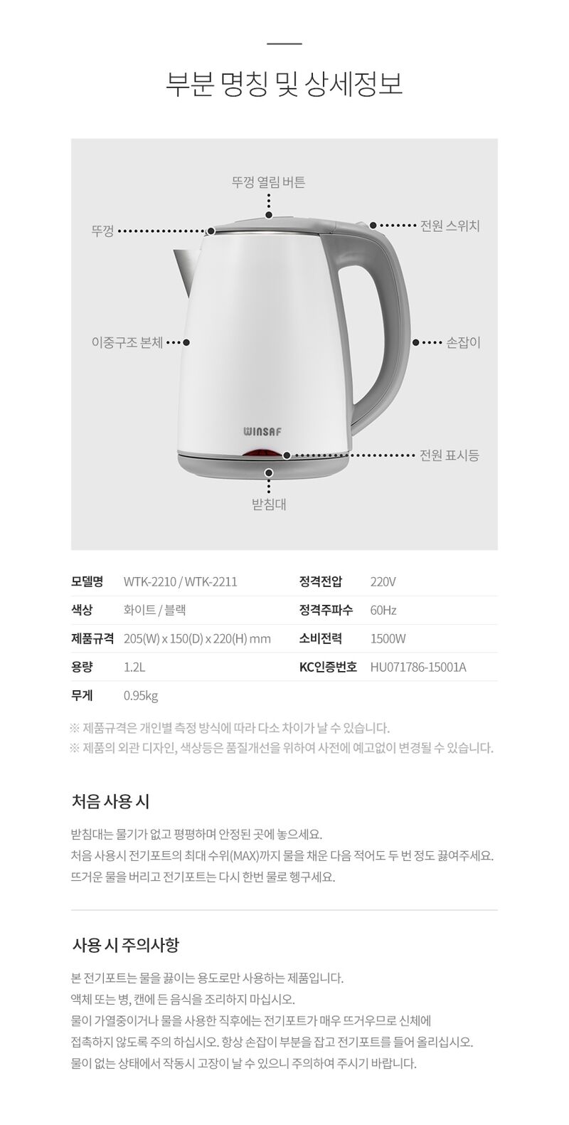 품명 및 모델명 : 전기포트 WTK-2210(화이트),2211(블랙)