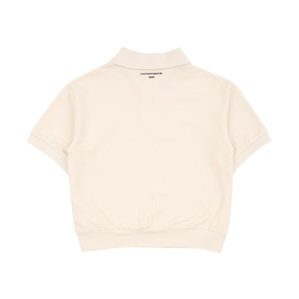 산뜻한 아이보리 컬러의 미니쮸리스판으로 만들어진 카라 티셔츠 아이템입니다.