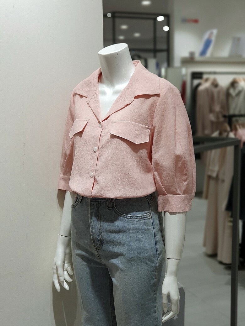 데일리 한 무드가 느껴지는 반팔 블라우스입니다.