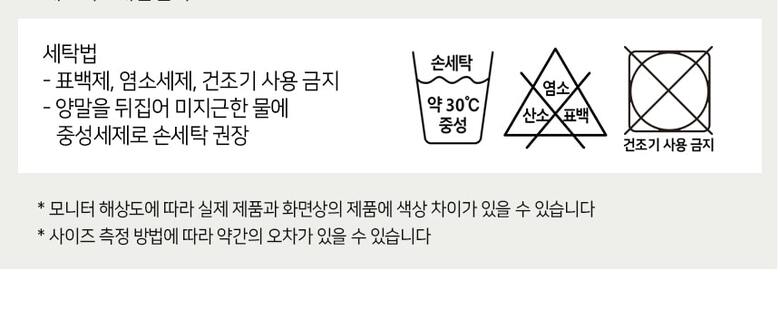6. 취급시 주의사항 | 중성세제로 세탁 / 건조기 및 표백제 사용금지 |