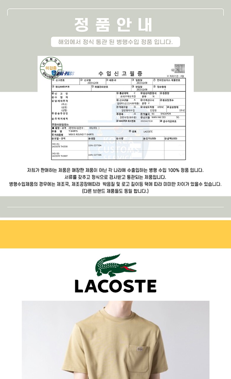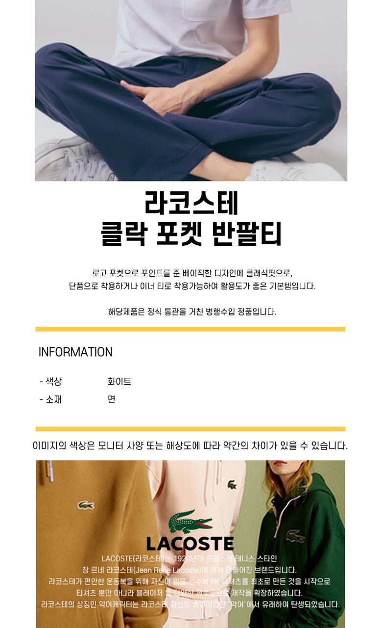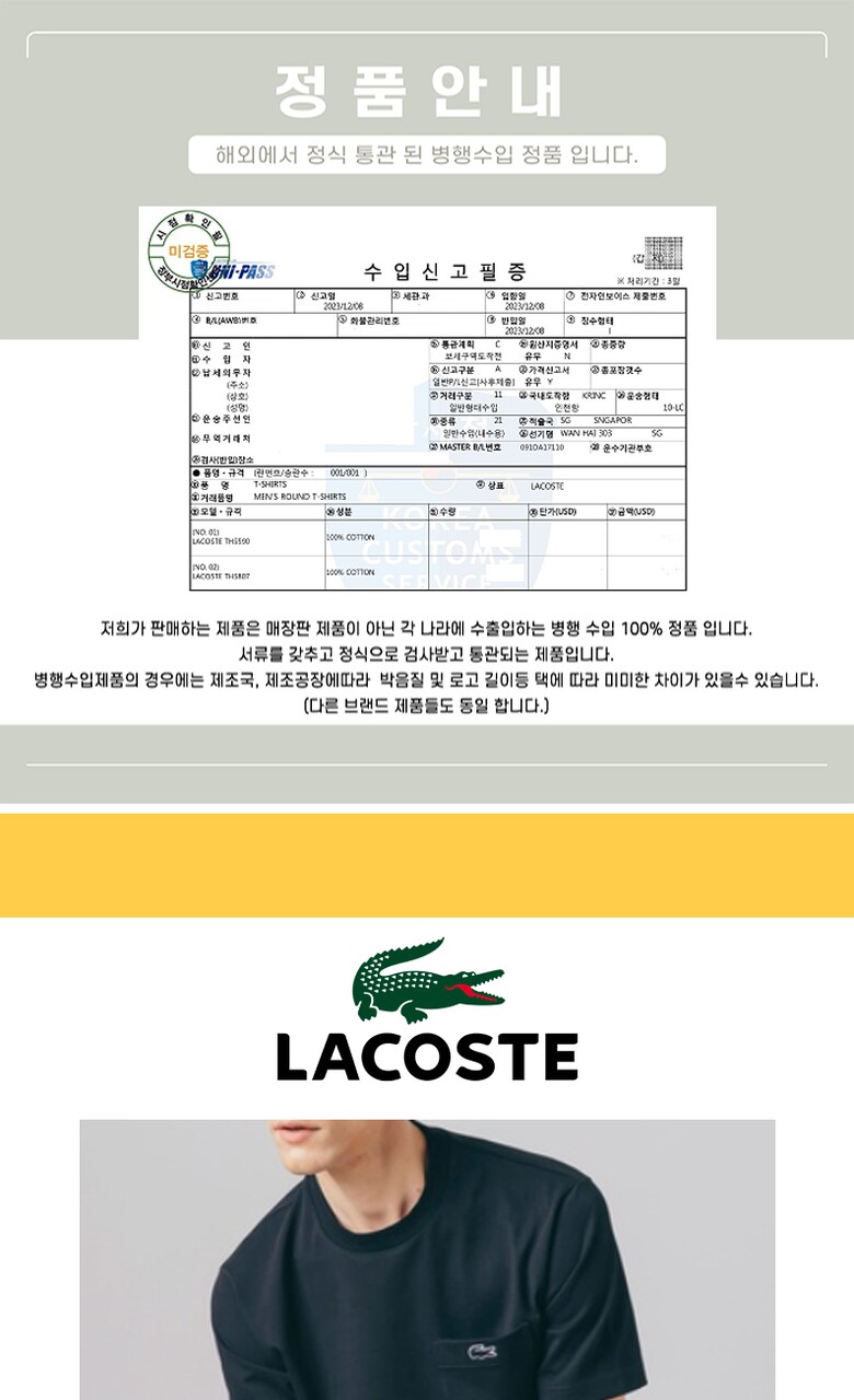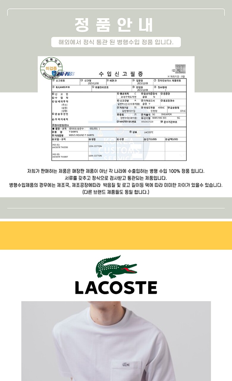 LACOSTE 라코스테 클락 포켓 반팔티 TH5807 클래식핏 4종 택1
