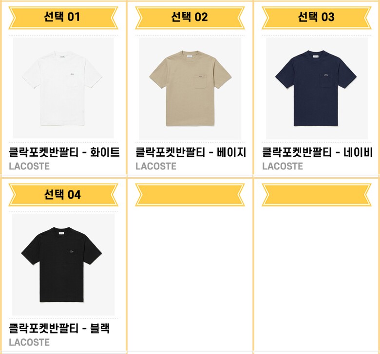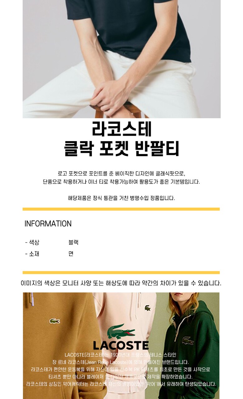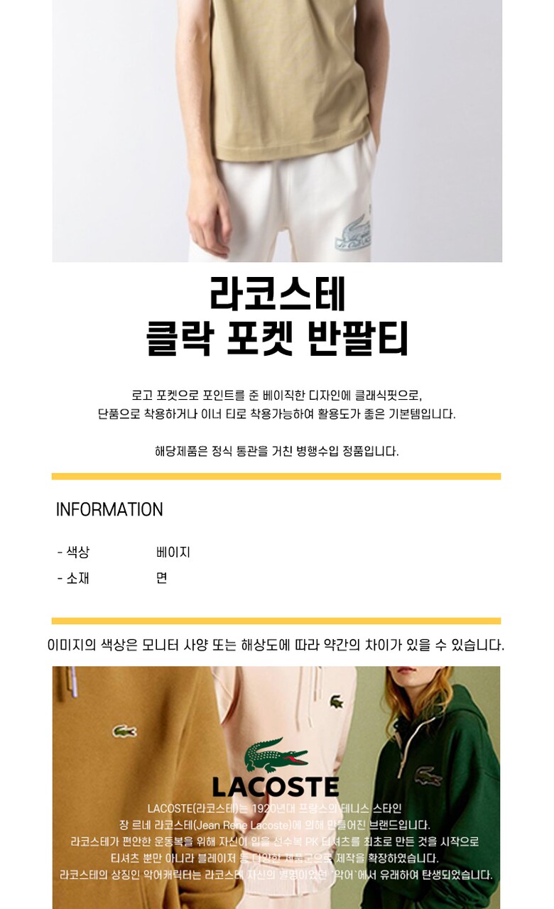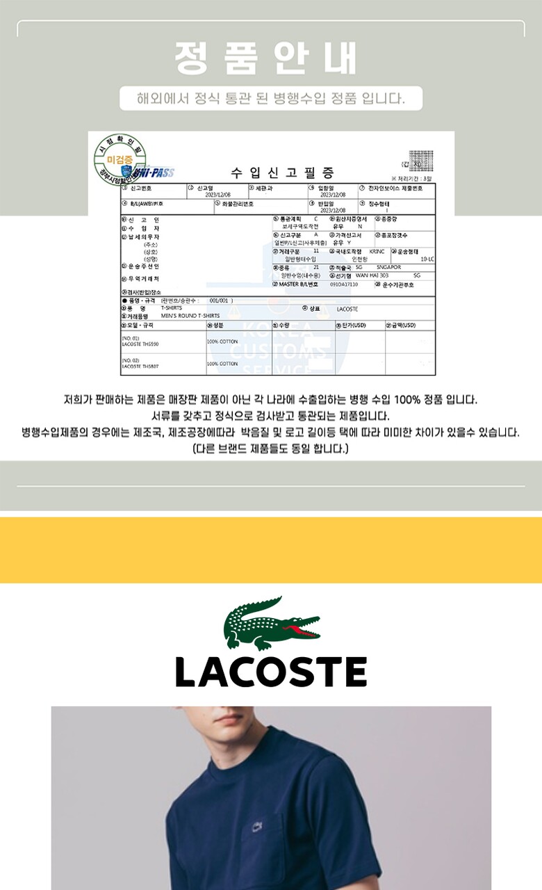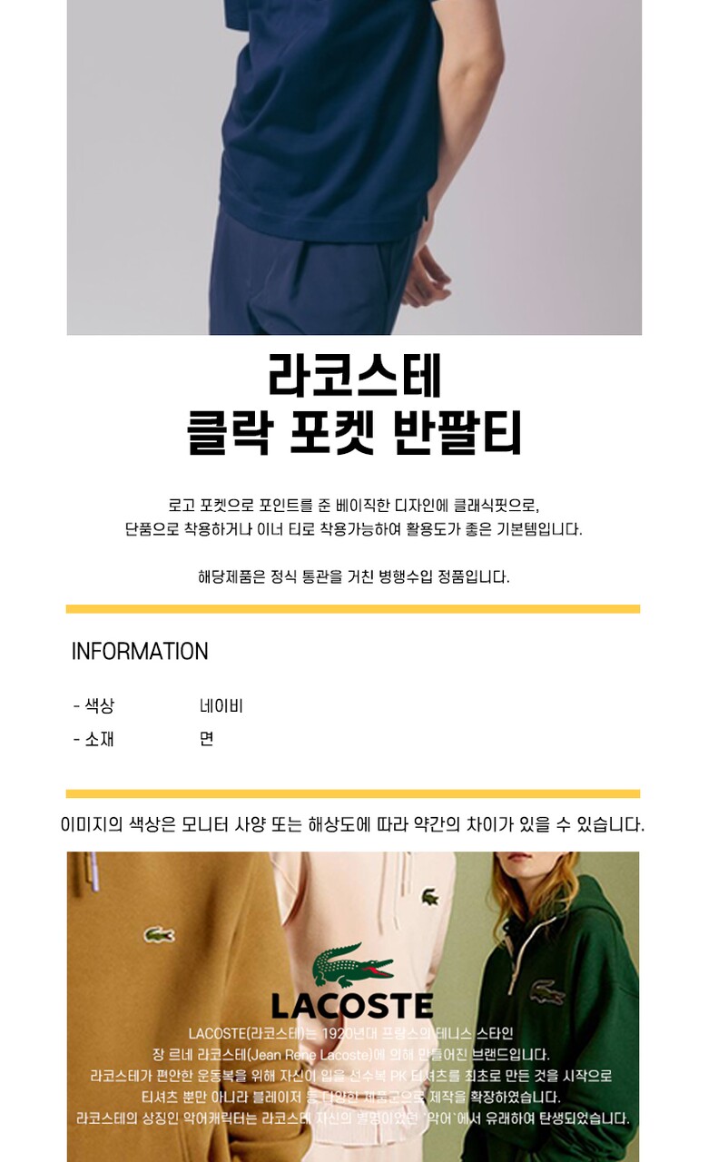 LACOSTE 라코스테 클락 포켓 반팔티 TH5807 클래식핏 4종 택1