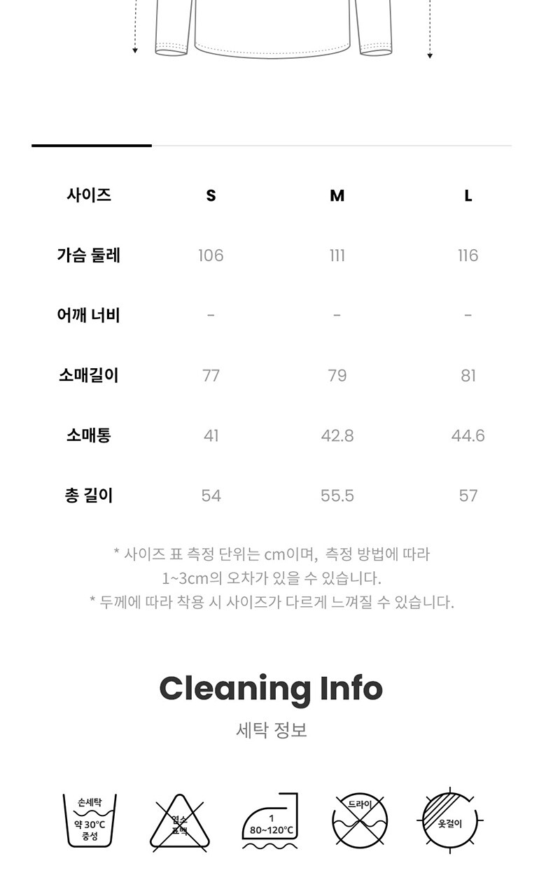 3. 치수 | S(55),M(66),L(77),XL(88) |