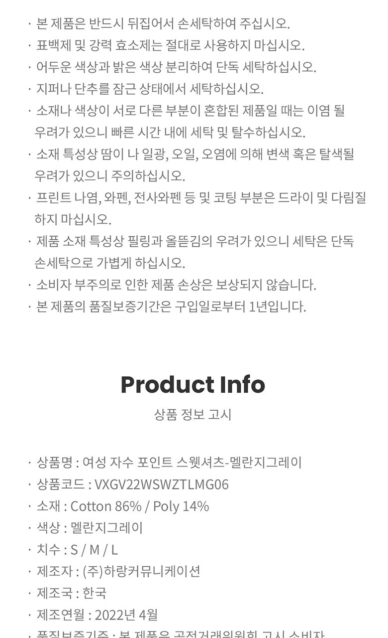 1. 제품 소재 (섬유의 조성 또는 혼용률을 백분율로 표시, 기능성인 경우 성적서 또는 허가서) | [겉감] 면 86%, 폴리 14% |