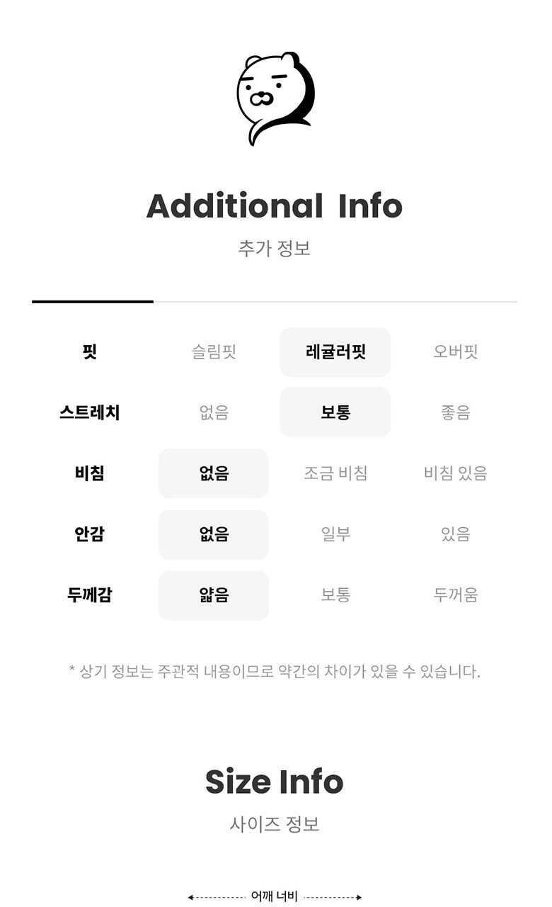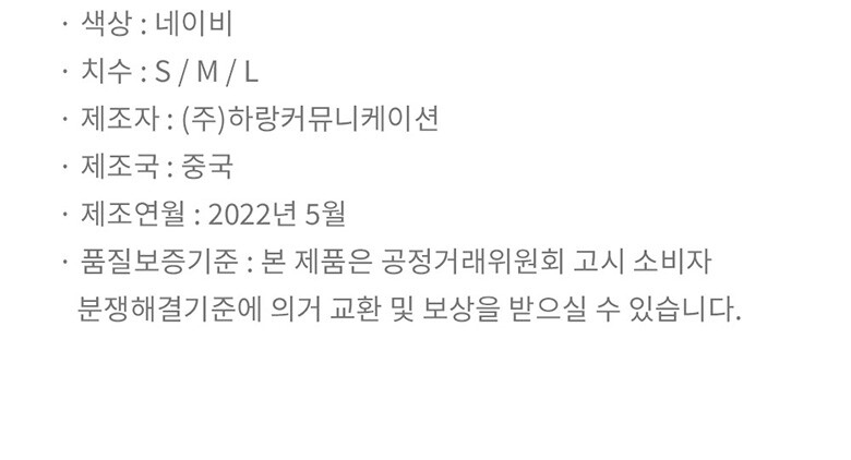 | 3. 치수 | S(55),M(66),L(77),XL(88) |