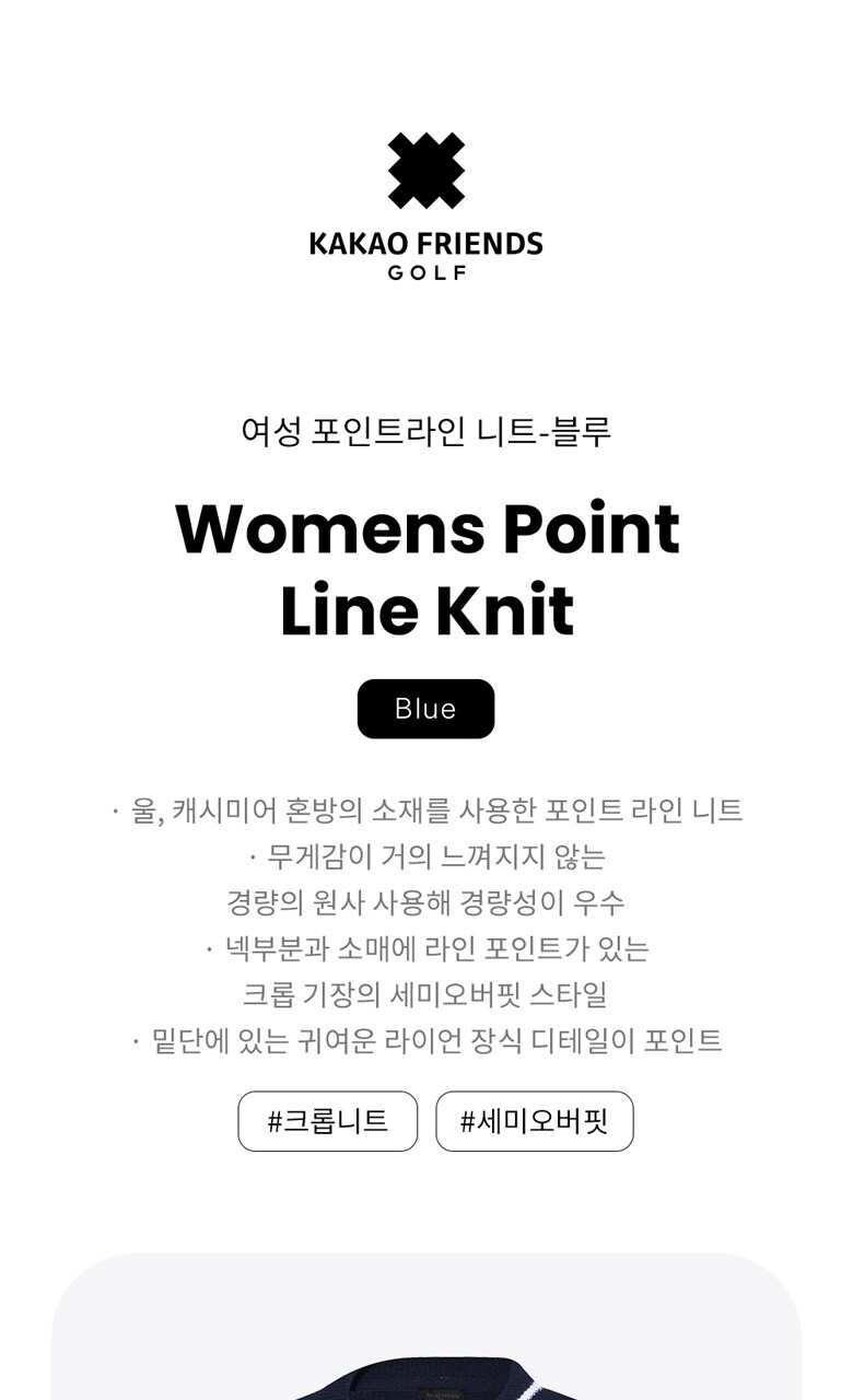 [카카오프렌즈골프] 여성 캐시미어울 포인트라인 니트