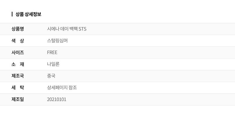 | 1. 종류 | 가방 |