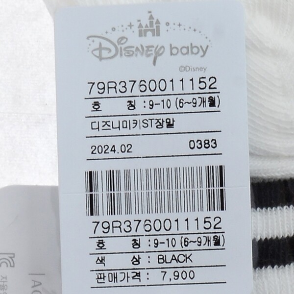 | 1. 제품 소재 (섬유의 조성 또는 혼용률을 백분율로 표시, 기능성인 경우 성적서 또는 허가서) | 디즈니미키ST장말 |