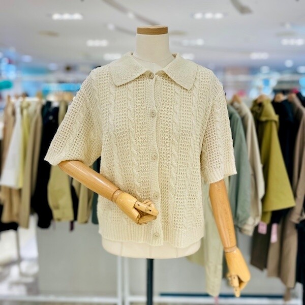 A24SW4211_꽈배기 짜임 반팔 카라 니트