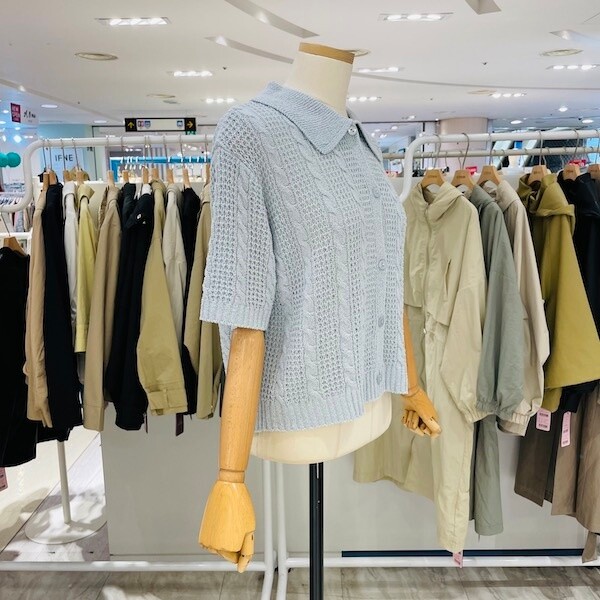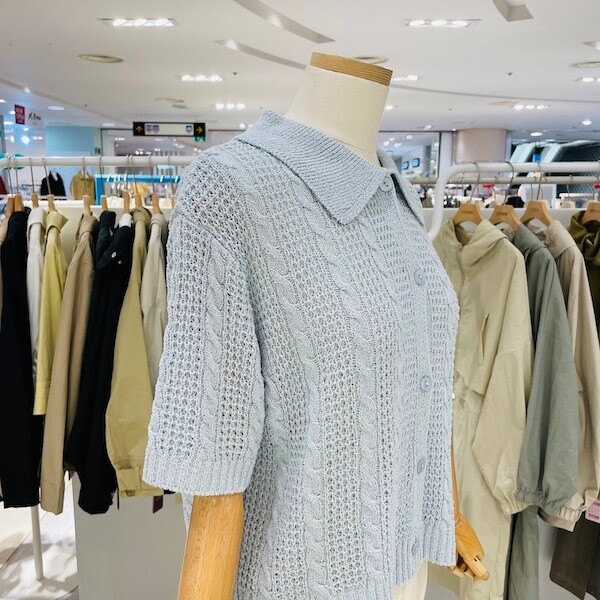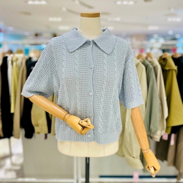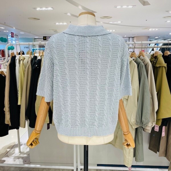 스테파니 A24SW4211 꽈배기 짜임 반팔 카라 니트