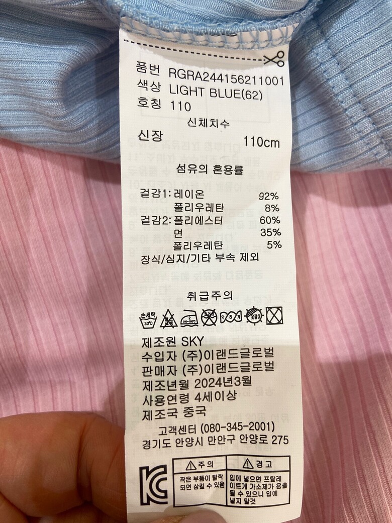 | 6. 세탁방법 및 취급시 주의사항 | 상품상세참조 |