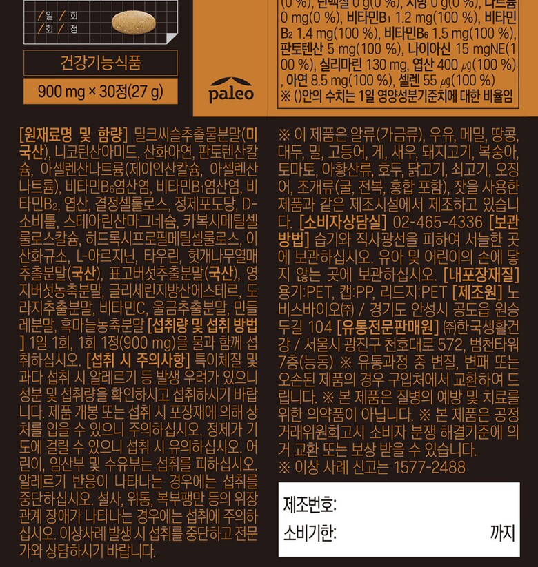 9. 섭취량, 섭취방법, 섭취시 주의사항 및 부작용 발생 | 상품상세참조 |