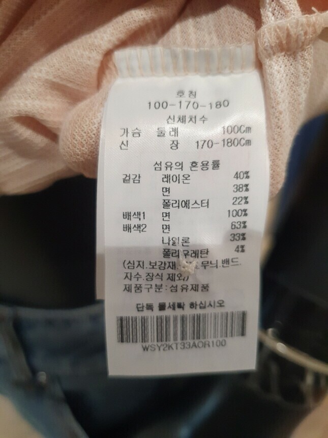겉감 : 레이온 40% , 면 38% , 폴리에스터 22%