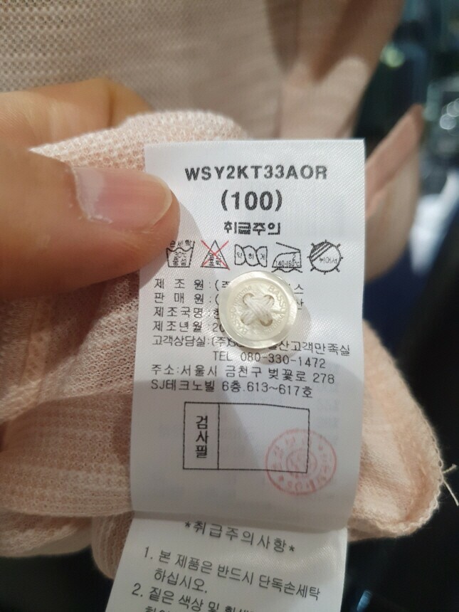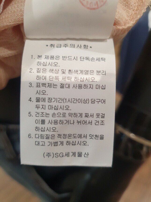 | 6. 세탁방법 및 취급시 주의사항 | 단독 손세탁 |