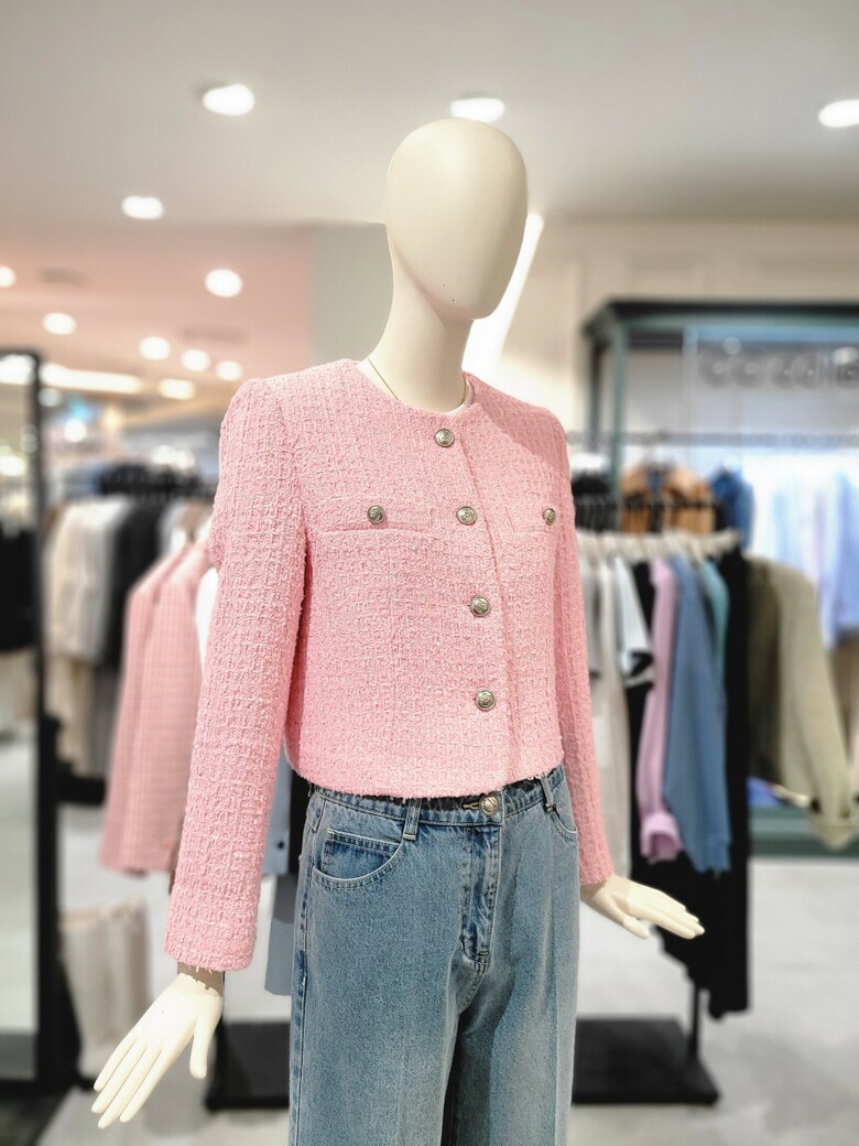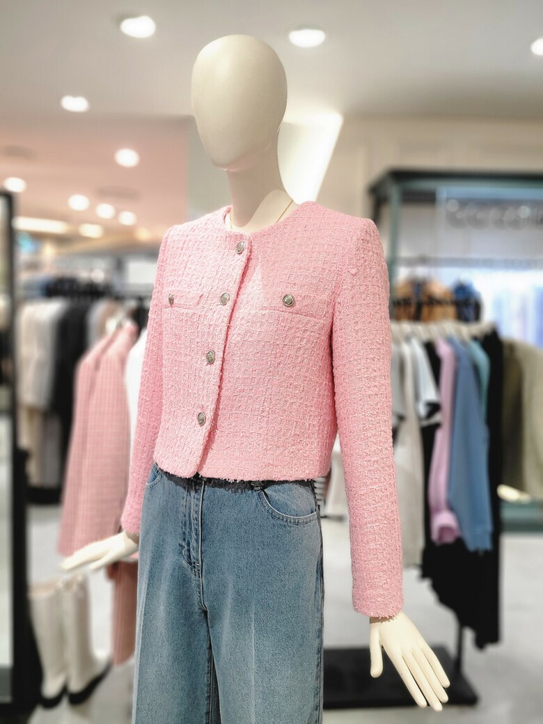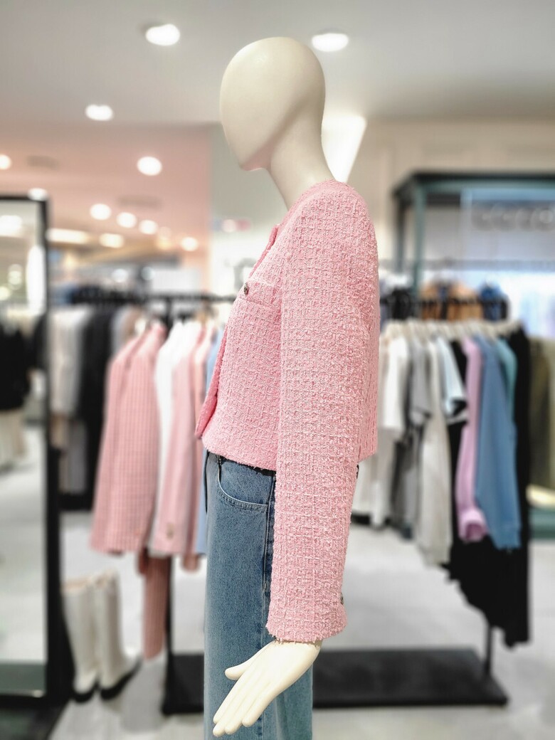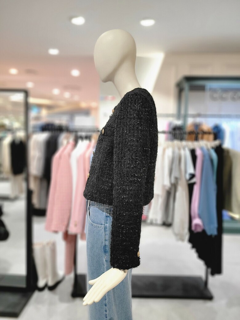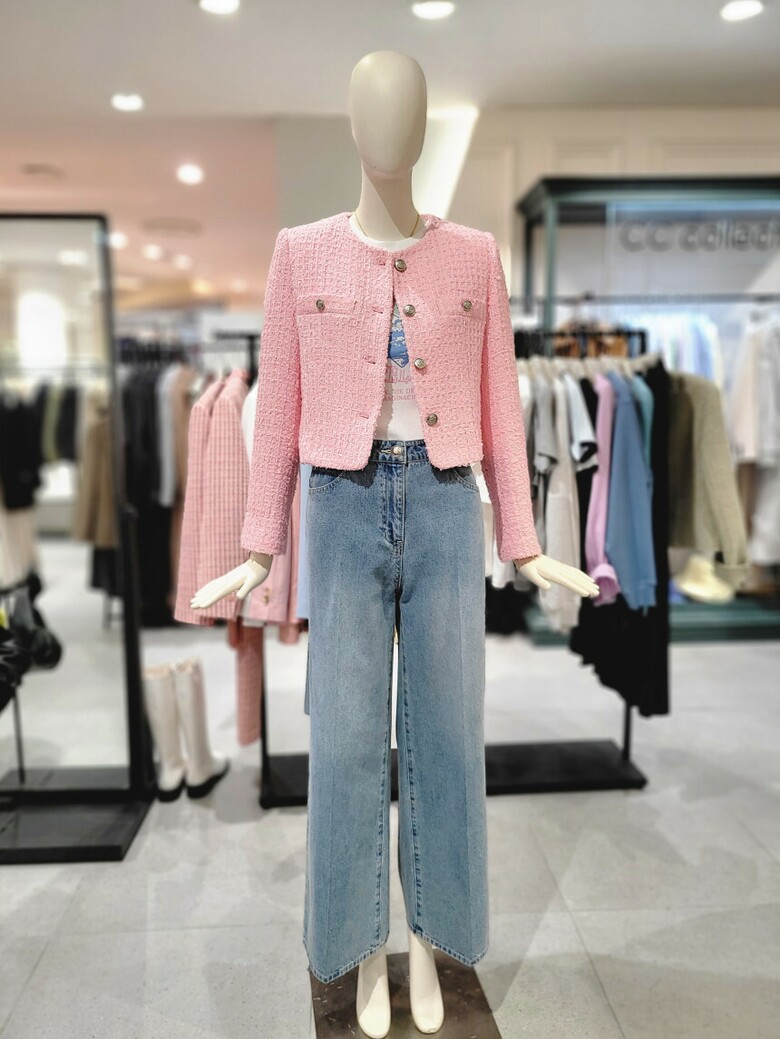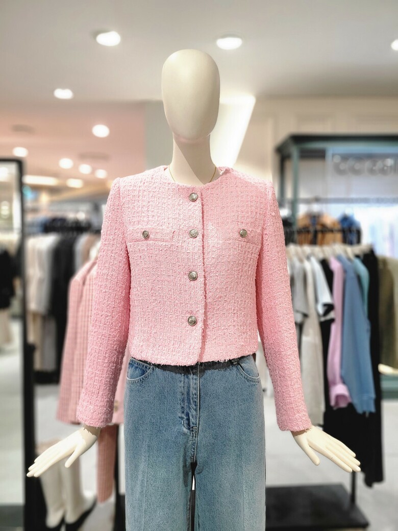 칼라리스 디자인이 깔끔하게 제안된 트위드 자켓입니다.