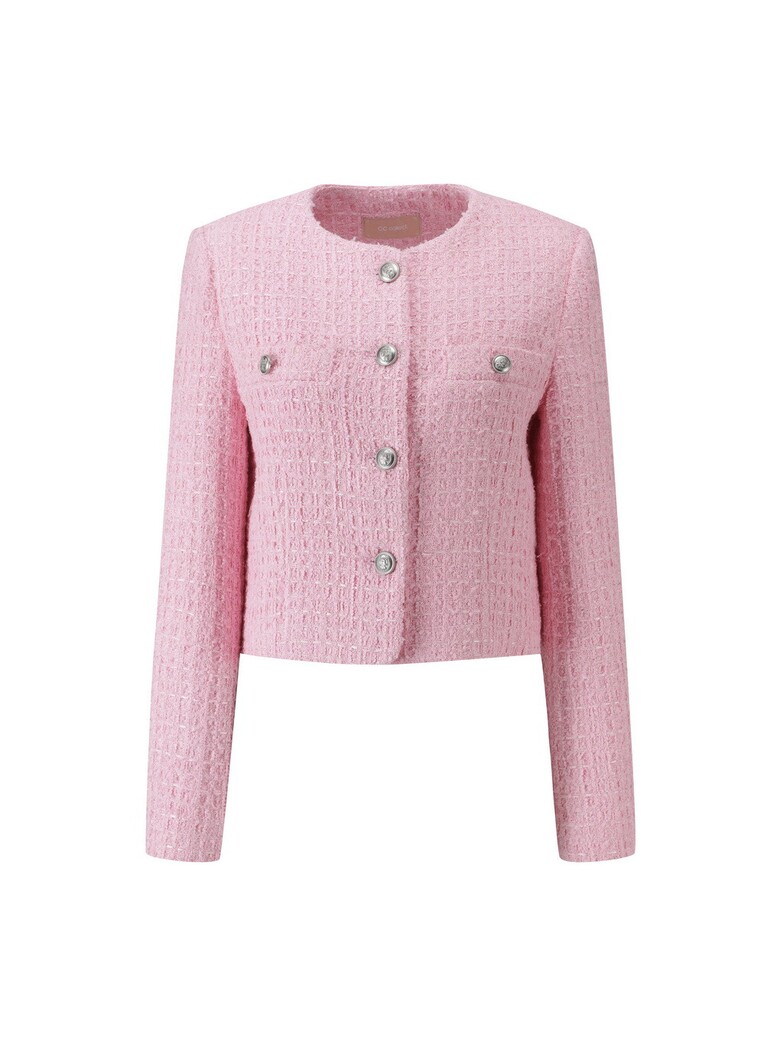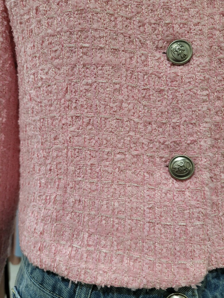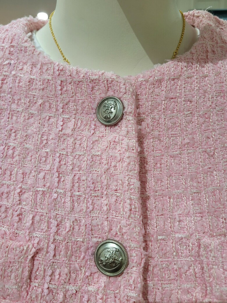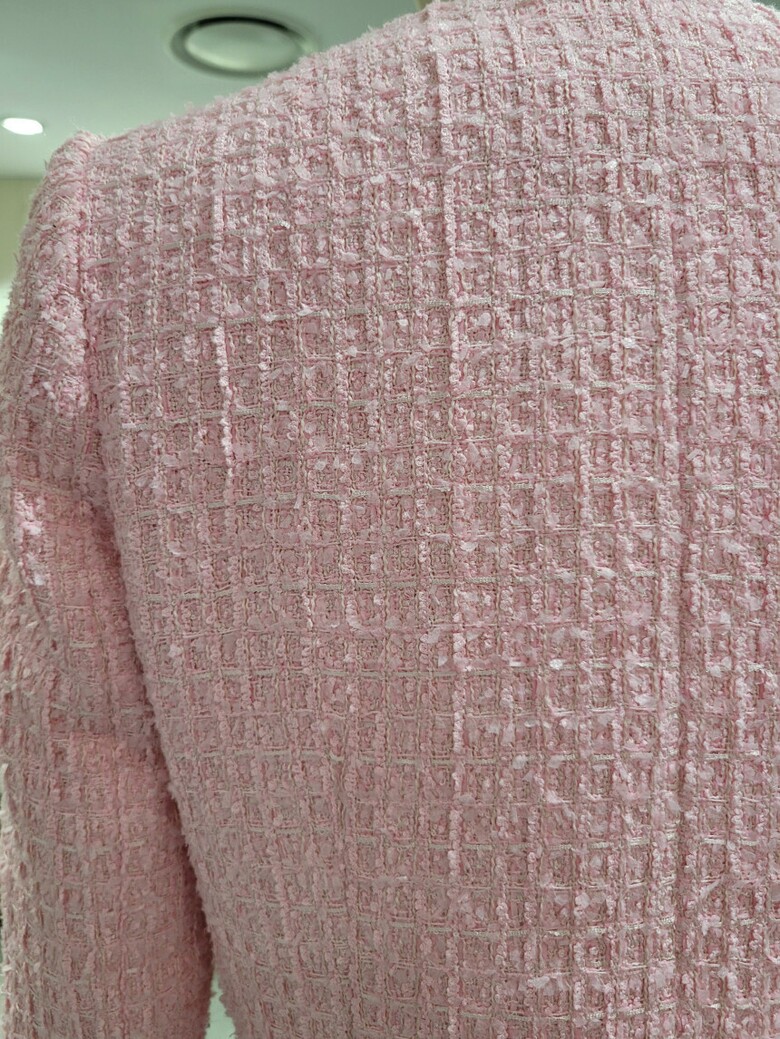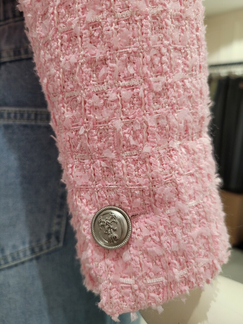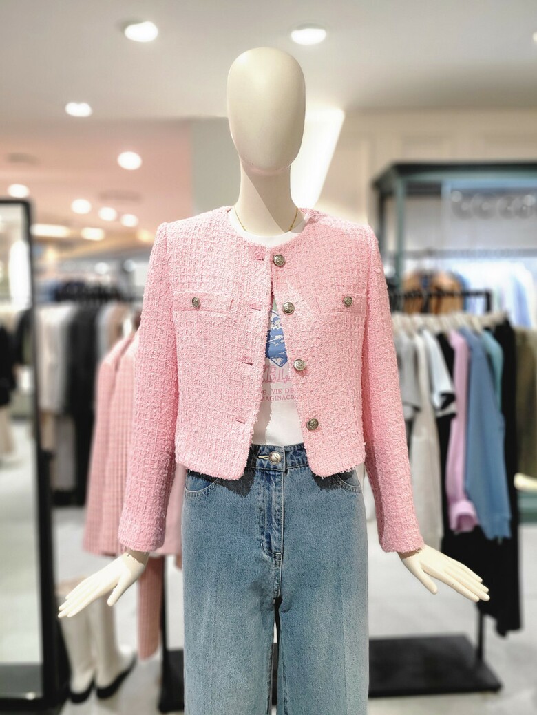 칼라리스 디자인이 깔끔하게 제안된 트위드 자켓입니다.
