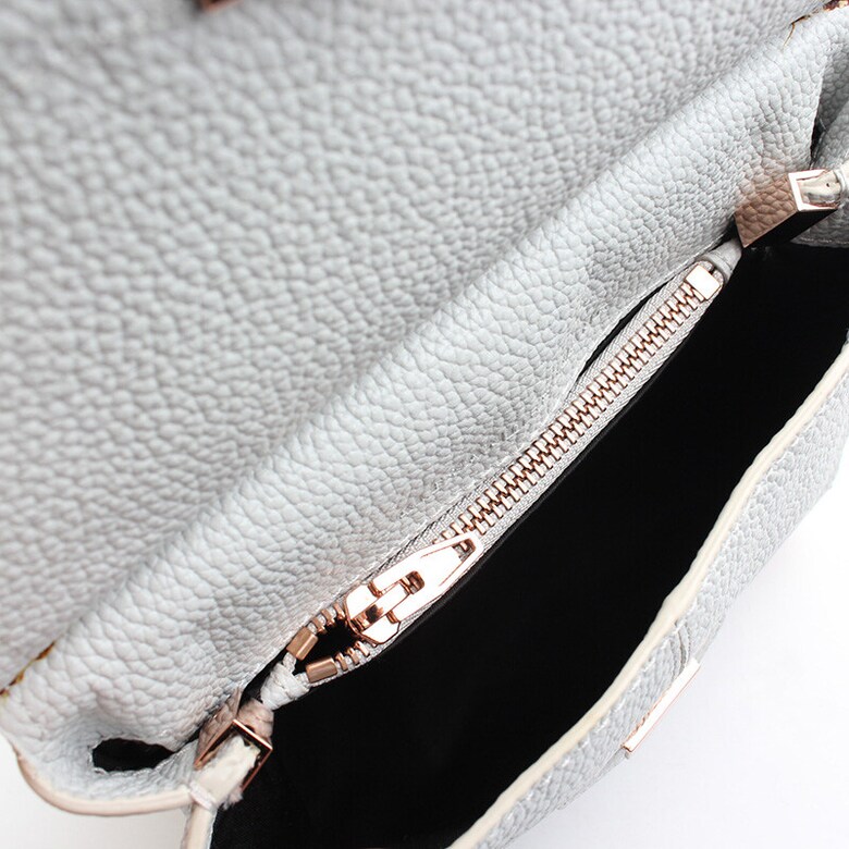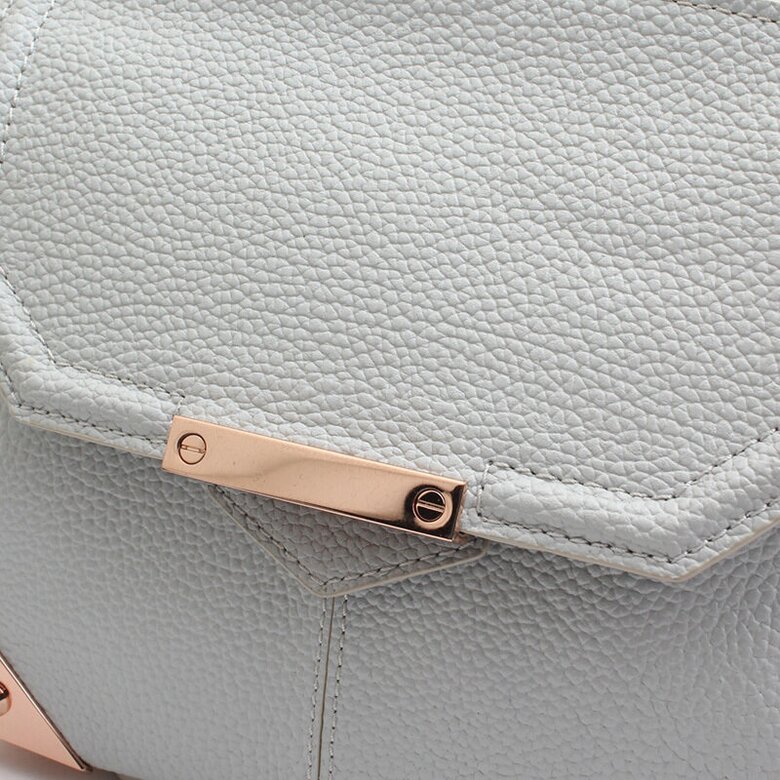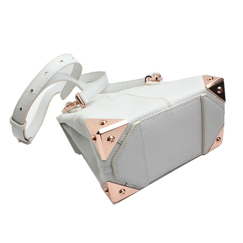 단정하게 잡힌 정사각 형태와 로즈골드 하드웨어 디테일의 조화가 독특하고 매력적인 백입니다.