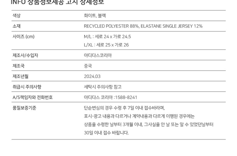 2. 소재 | 폴리에스터 88%, 폴리우레탄 12% |