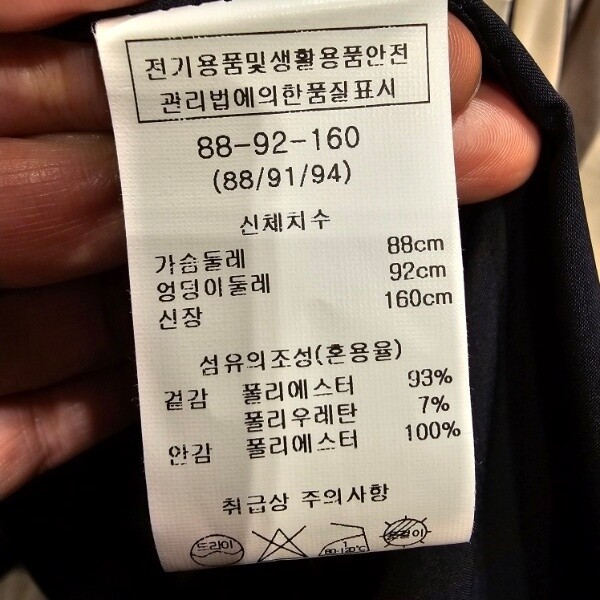 제품소재 : 겉감 폴리에스터 93% 폴리우레탄 7% / 안감 폴리에스터 100%