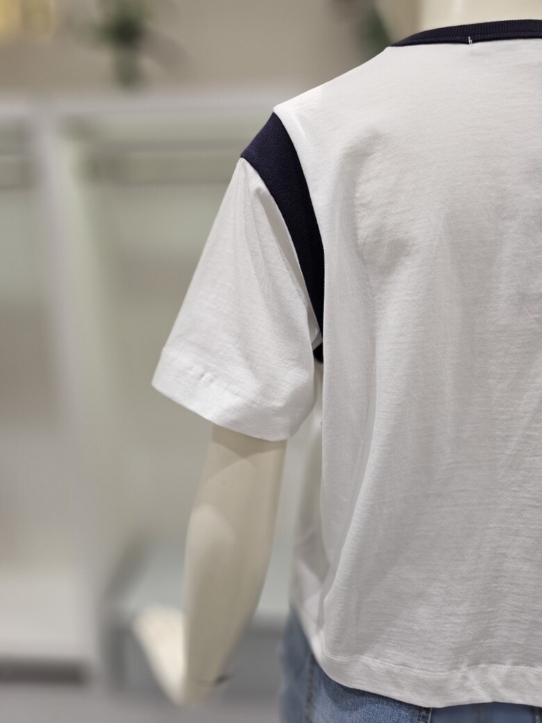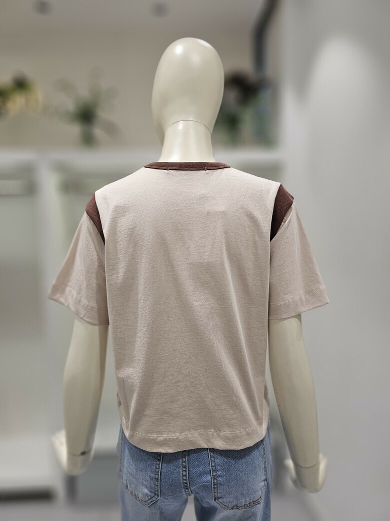 배색 크롭 반팔티셔즈NJW4M-E436