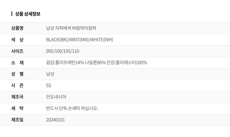 | 2. 색상 | BLACK(BK)/MINT(MN)/WHITE(WH) |