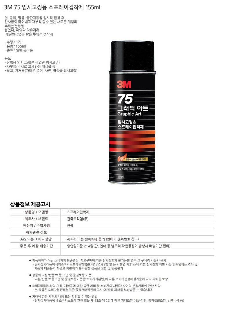[3M] 스프레이본드75임시접착제 8oz155ml(20입)