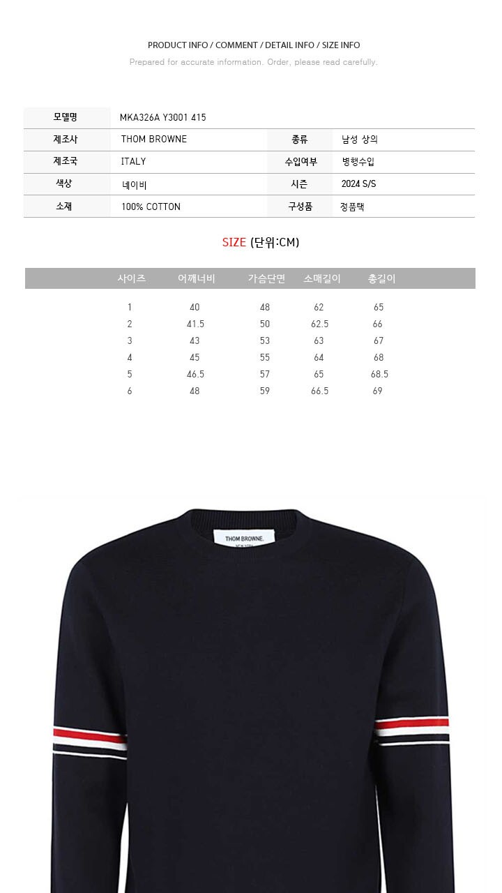 톰브라운 24SS 밀라노 스트라이프 슬리브 니트 네이비 MKA326A Y3001 415