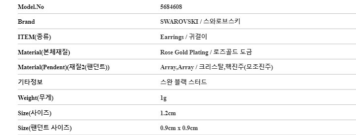 | 7. 주요 사양 | 로즈골드 도금 귀걸이 |