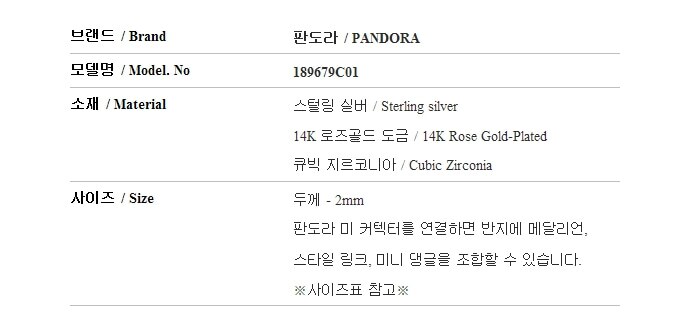 1. 소재 / 순도 / 밴드재질 | 로즈골드 / 쥬얼리 - 스털링실버 |