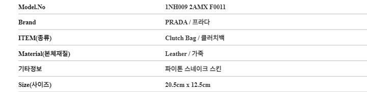 | 5. 제조사 | 프라다/MACHO-병행수입 |