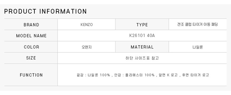 겐조 KENZO K26101 40A KENZO CLUB 겐조 클럽 타이거 주니어 패딩