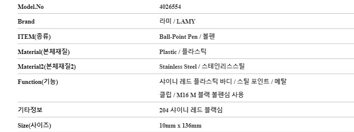 라미 LAMY 4026554 로고 204 샤이니 레드 블랙심 볼펜