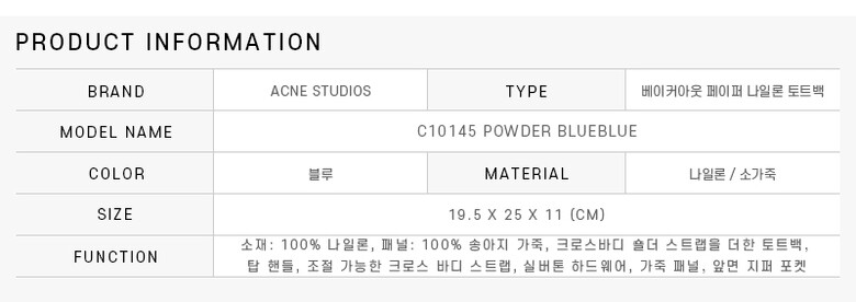 아크네스튜디오 ACNE STUDIOS C10145 POWDER BLUE/BLUE 공용 토트백