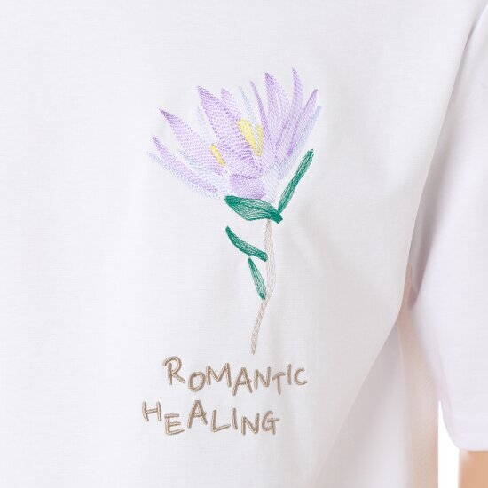 자수 포인트 라운드 티셔츠 입니다.