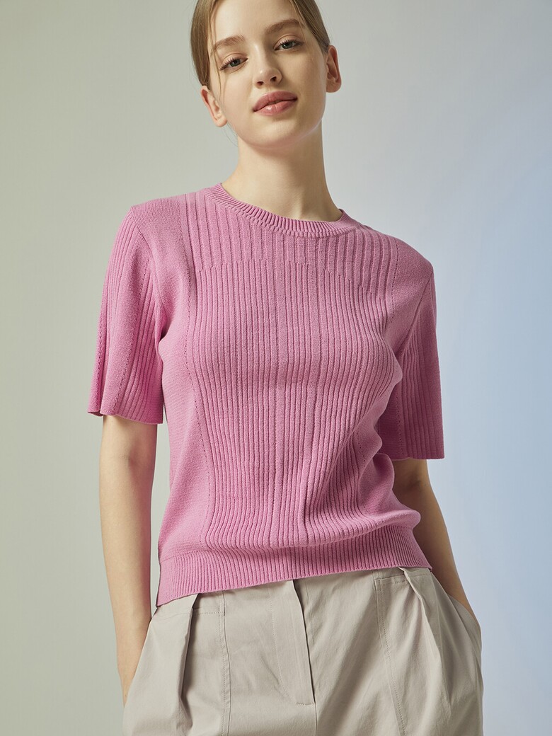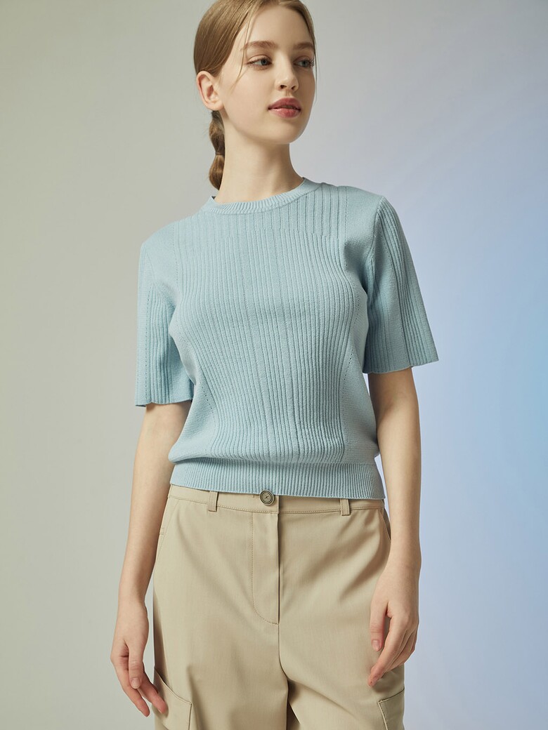 CC collect. 라운드넥 하프슬리브 니트 탑_C232KSK032