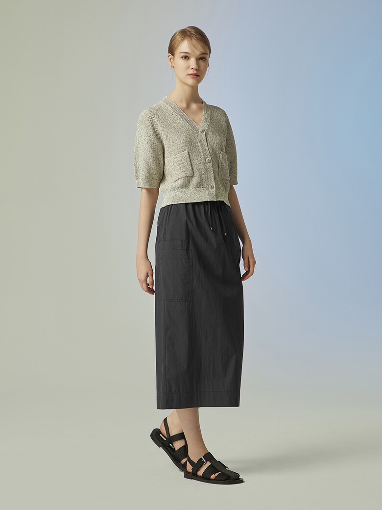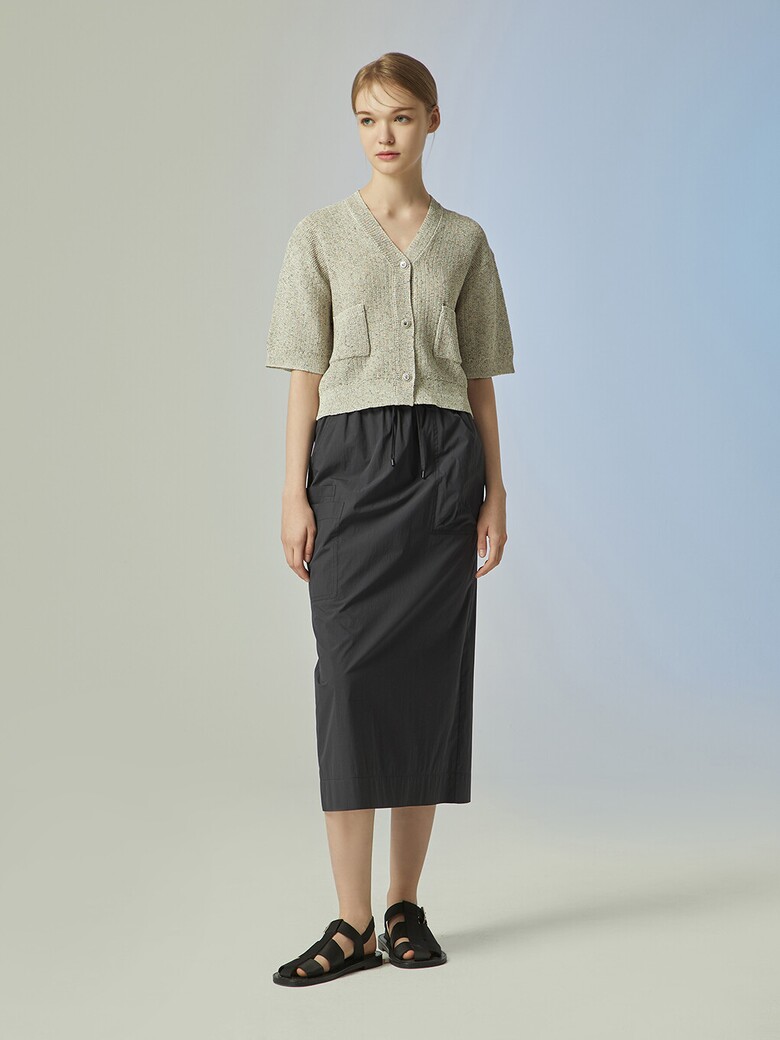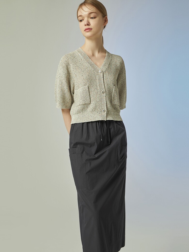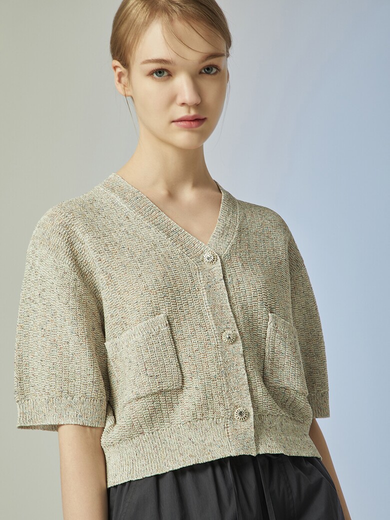 - 은은하게 반짝이는 글리터한 원사를 믹스한 소재감이 돋보이는 크롭 가디건입니다.