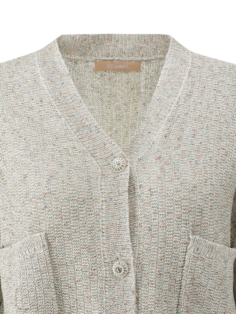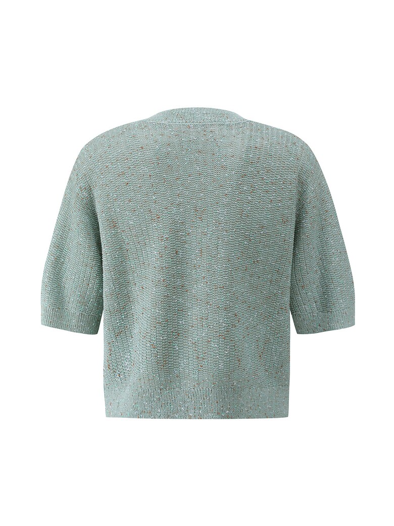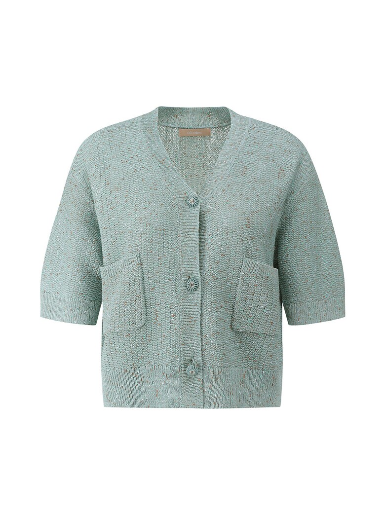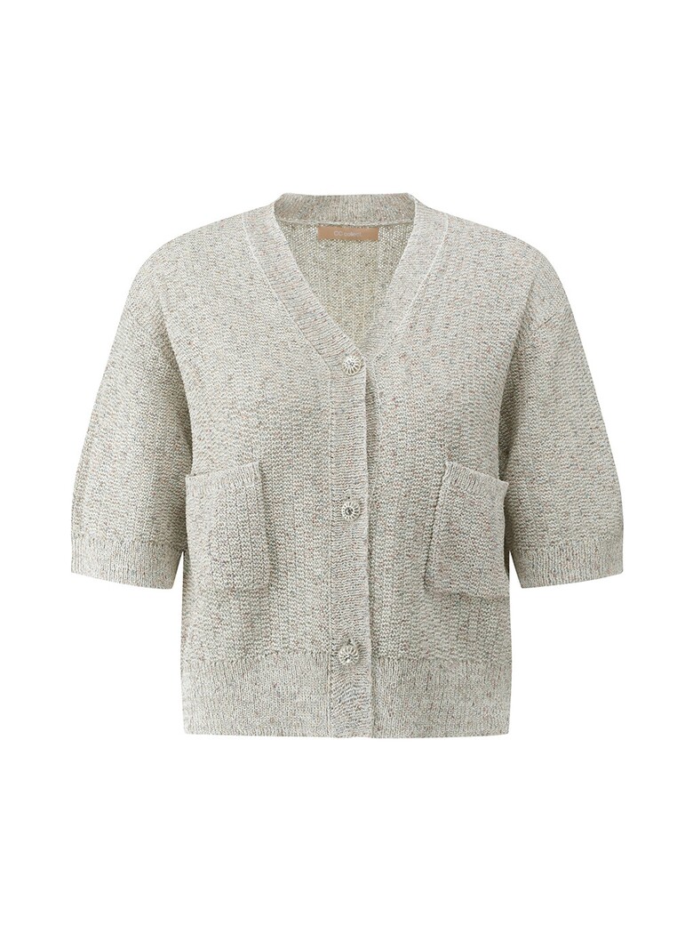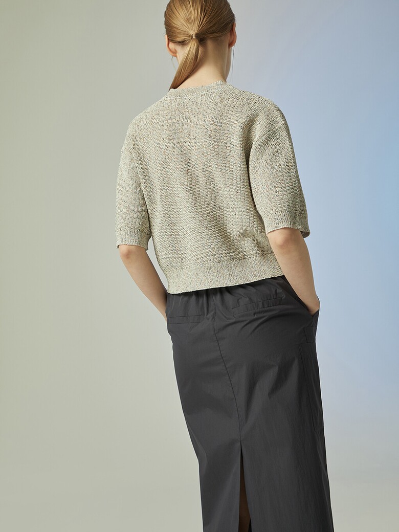 - 은은하게 반짝이는 글리터한 원사를 믹스한 소재감이 돋보이는 크롭 가디건입니다.